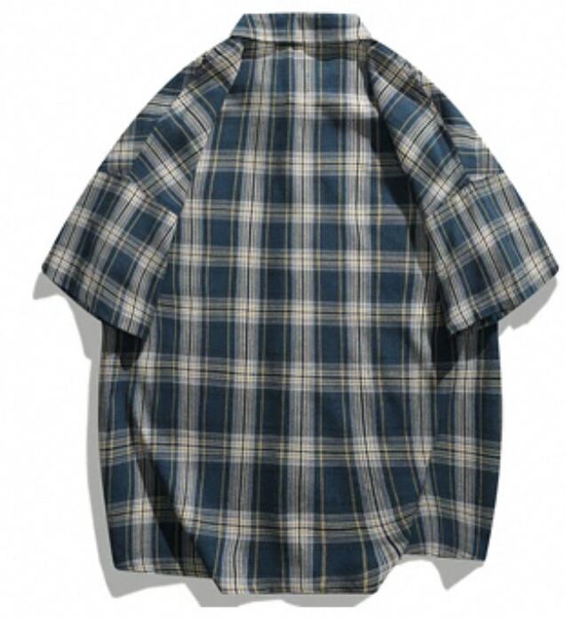 ##半袖オーバーシャツ チェック柄 青
